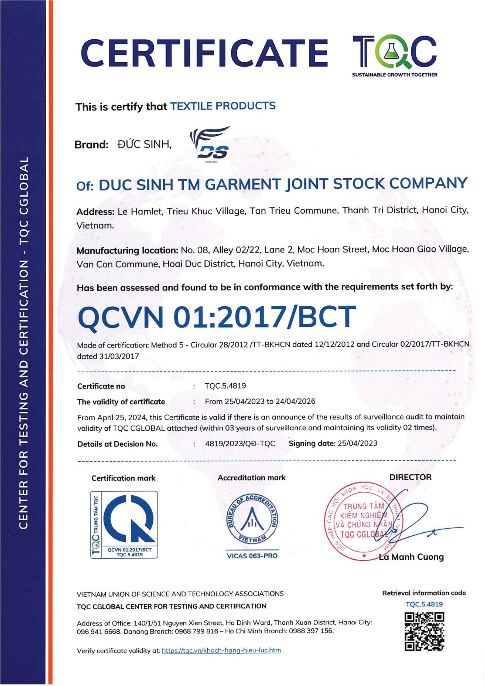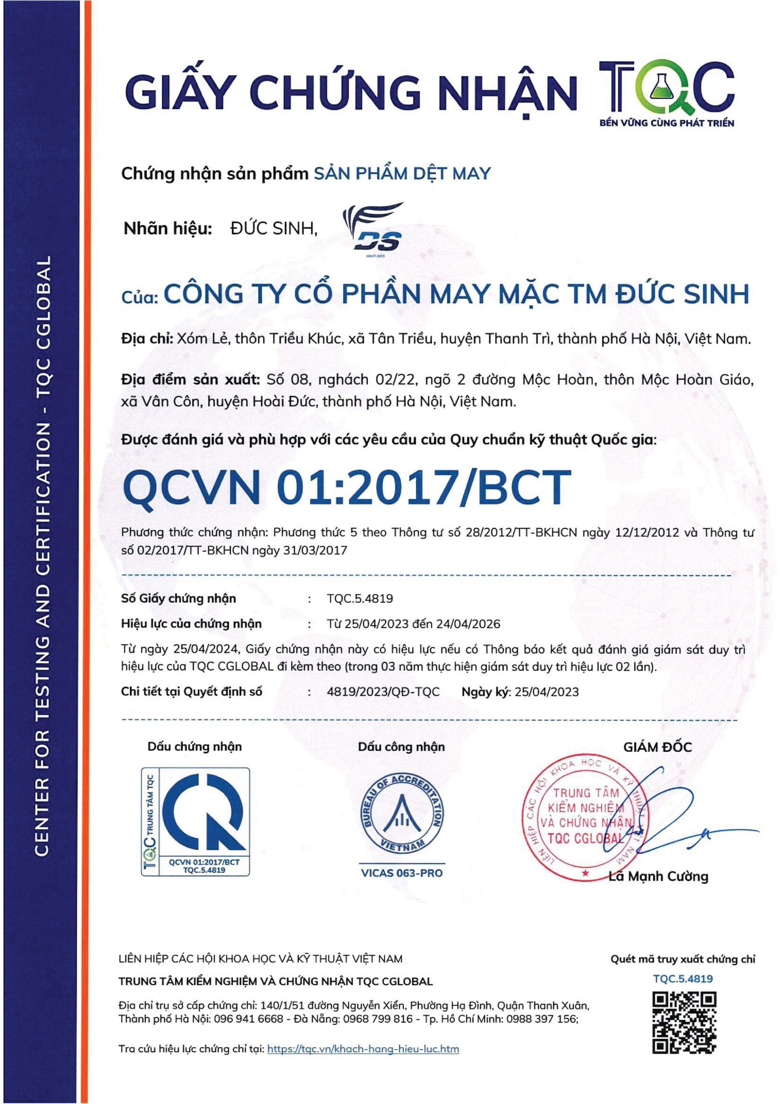 chứng nhận chất lượng