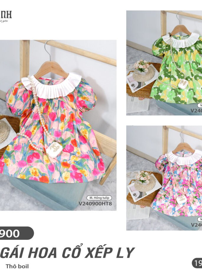 VÁY GÁI HOA CỔ XẾP LY