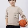 – Kiểu dáng: Áo dài thun bé trai cổ tròn, tay reaglan cách điệu, in họa tiết chữ Hanspack dễ thương