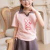 - Kiểu dáng : Áo polo bé gái, điểm nhấn hình in thỏ chữ nhỏ tinh tế, đáng yêu, giúp bé dễ dàng mặc đi học đi chơi kết hợp quần và chân váy đều được.