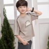 - Kiểu dáng : Áo thun bé trai , dáng rộng cơ bản điểm nhấn là đường phối lé hai bên tay kết hợp cùng hình in chữ khoẻ khoắn toát lên vẻ năng động tinh nghịch cho các bạn trai