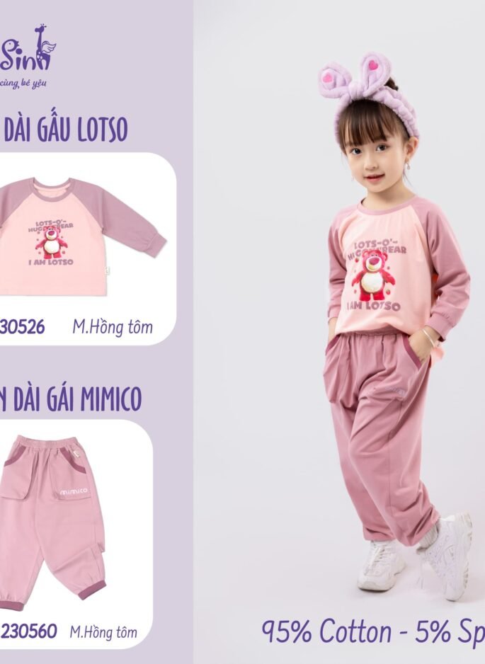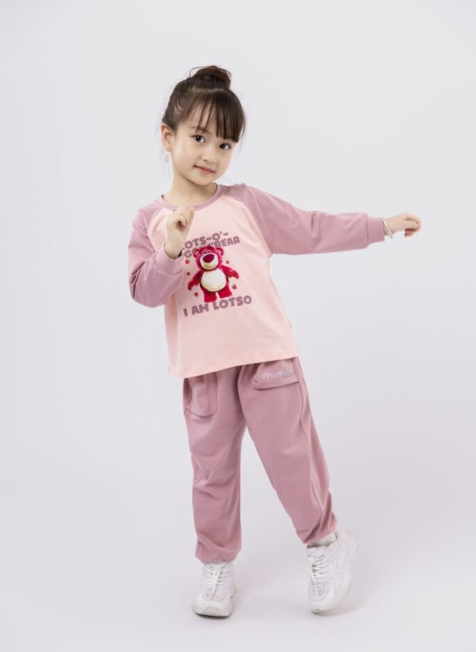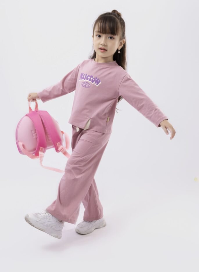 Bộ dài tay cho bé gái gồm áo và quần dài, thiết kế năng động, đáng yêu.