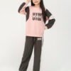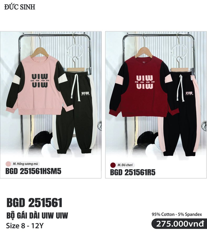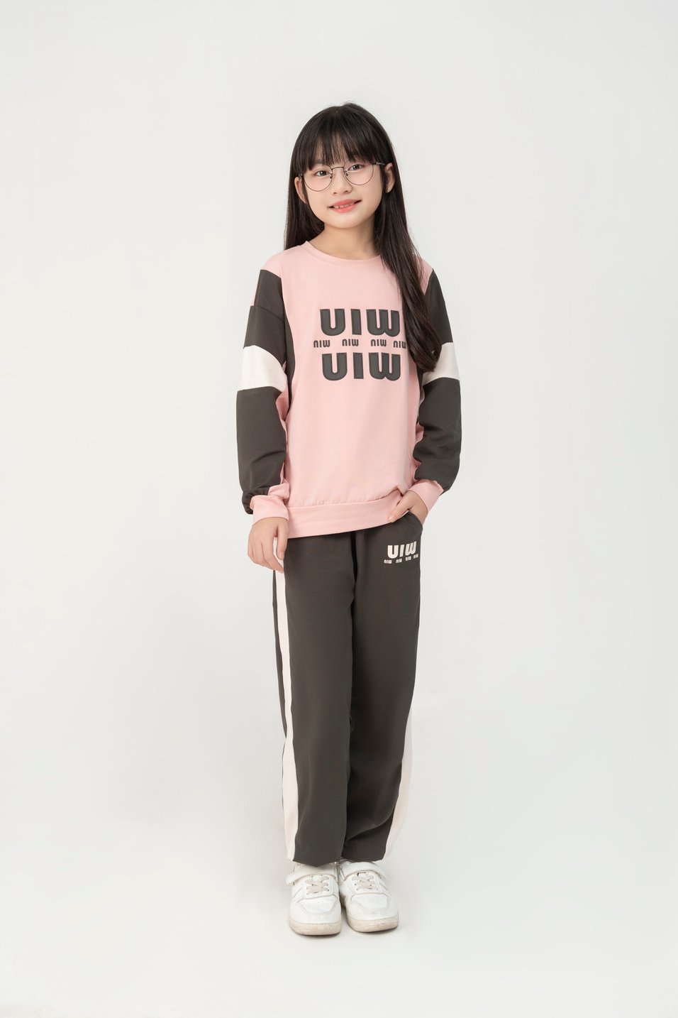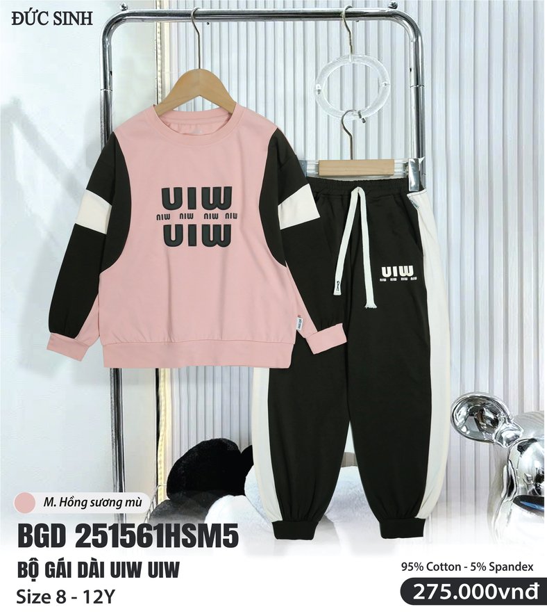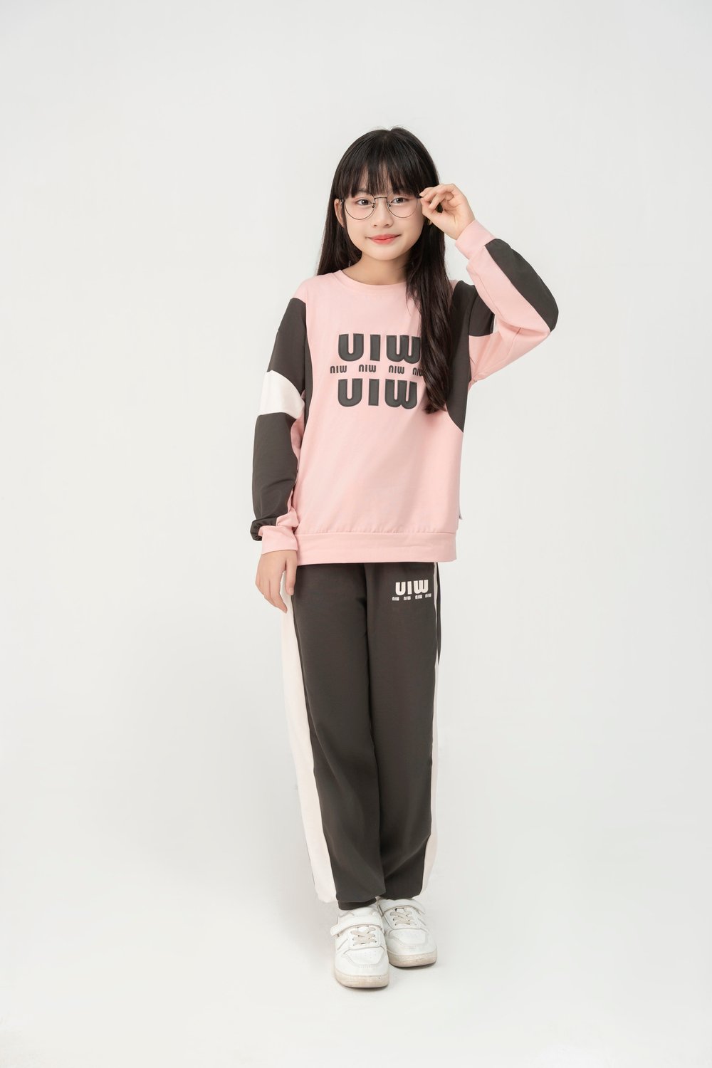 - Bộ áo dài tay và quần dài form rộng thoải mái, mang phong cách thể thao năng động.