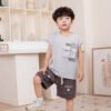 - Kiểu dáng : Quần ngố bé trai điểm nhấn là túi hộp kết hợp cùng 1 vài phụ kiện trang trí trên túi khiến chiếc quần trở lên độc đáo và mới mẻ dễ dàng ghép áo để mặc đi học đi chơi